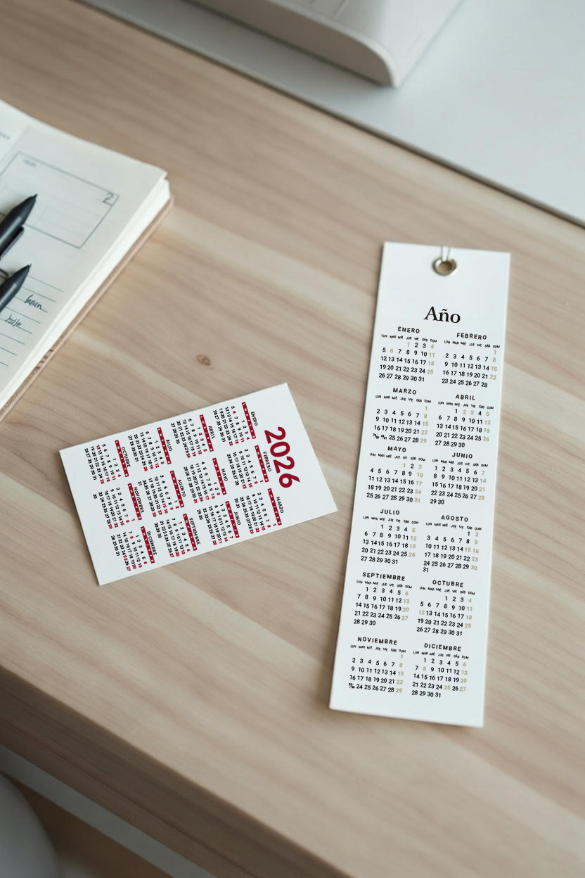 Si eliges el calendario de marcapáginas tus mejores recuerdos en un objeto práctico y hermoso con nuestro Calendario Marcapáginas Personalizado. Este producto único combina la función de un marcapáginas con la utilidad de un calendario de bolsillo.